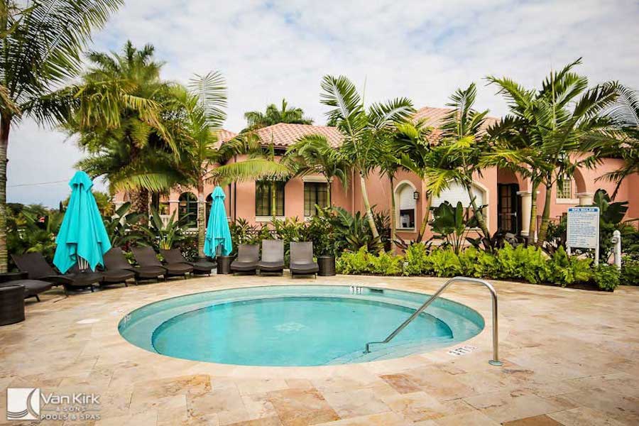 Elegant spa and relaxation zone designed by Van Kirk & Sons Pools & Spas.