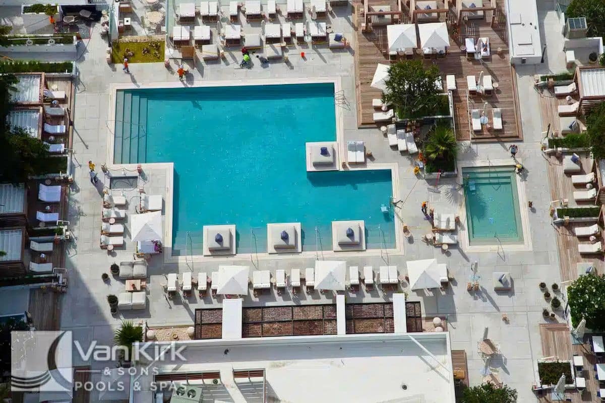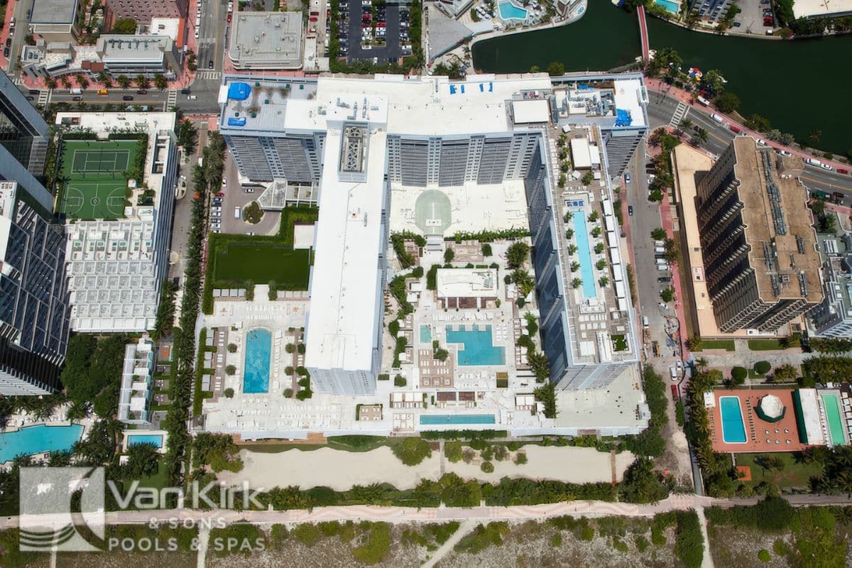 Kicking off Friday with a bird’s-eye view of the entire 1 Hotel South Beach. Van Kirk Pools was proud to build this massive, multi-pool oceanfront oasis.